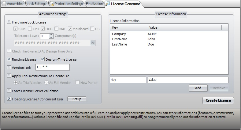 Protect your application, create the license file and copy it to the location of your protected application. Now, if you run the protected application, it automatically connects to the floating license service.