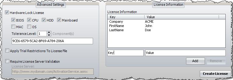 2. Detail your license file settings on the License Generator page.