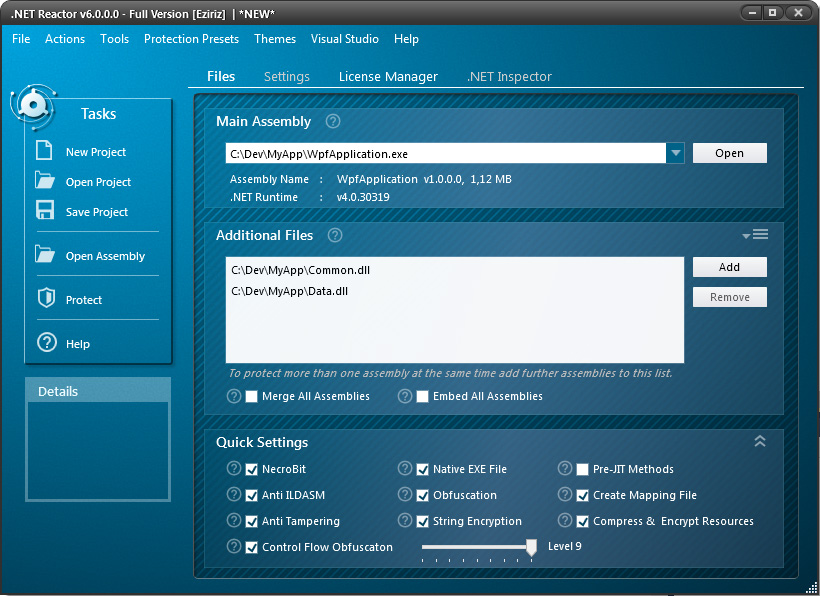 Here are some screenshots of .NET Reactor. Please click on the image to open a new window with a full-size image.